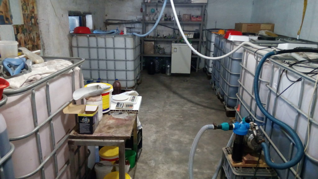 Было установлено, что незаконное производство организовал в своем доме житель одного из сел области. Фальсификат изготавливался с помощью ароматизаторов с различными фруктовыми вкусами и спирта.