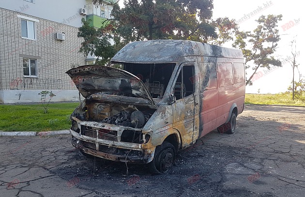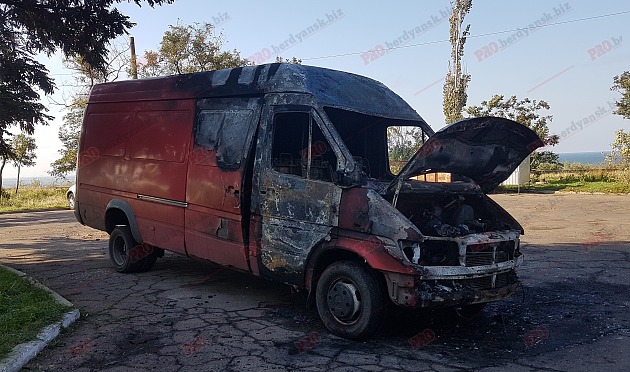 На запорожском курорте ночью сгорел микроавтобус - ФОТО