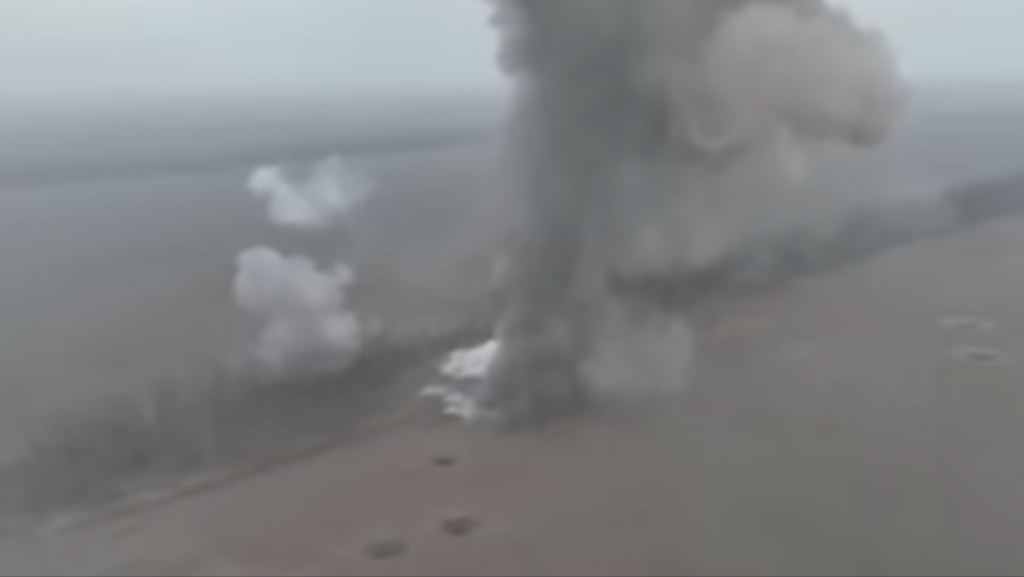 «Уничтожение склада боеприпасов оккупантов на Запорожском направлении», – рассказали в Генштабе, опубликовав соответствующее видео.