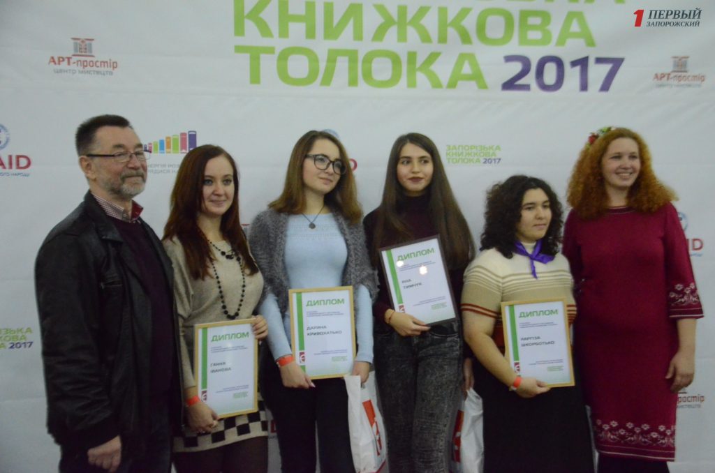 Лучшие участицы конкурса получили дипломы и подарки от «Книгарні Є». «Первый запорожский» узнал, что в заветной упаковке находилась «настольная библия поэта» — книга издательства «А-БА-БА-ГА-ЛА-МА-ГА» «Антологія української поезії ХХ століття».