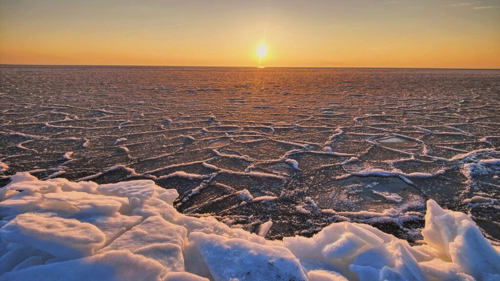 Юлия Покас поделилась невероятными снимками Азовского моря, покрывшегося тонкой ледовой коркой. Кадры были сделаны в Бердянске на закате. Зимнее море в лучах ярко-оранжевого солнца выглядит необычно и очень красиво – словно пейзажи с другой планеты.