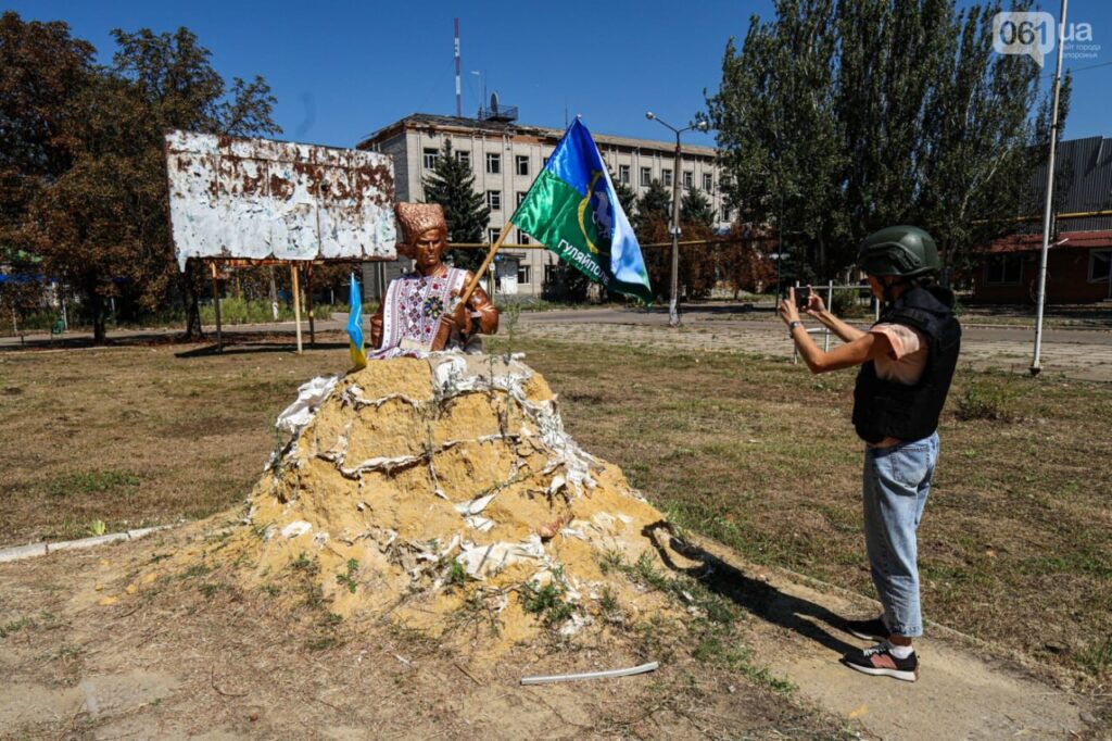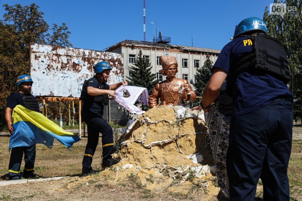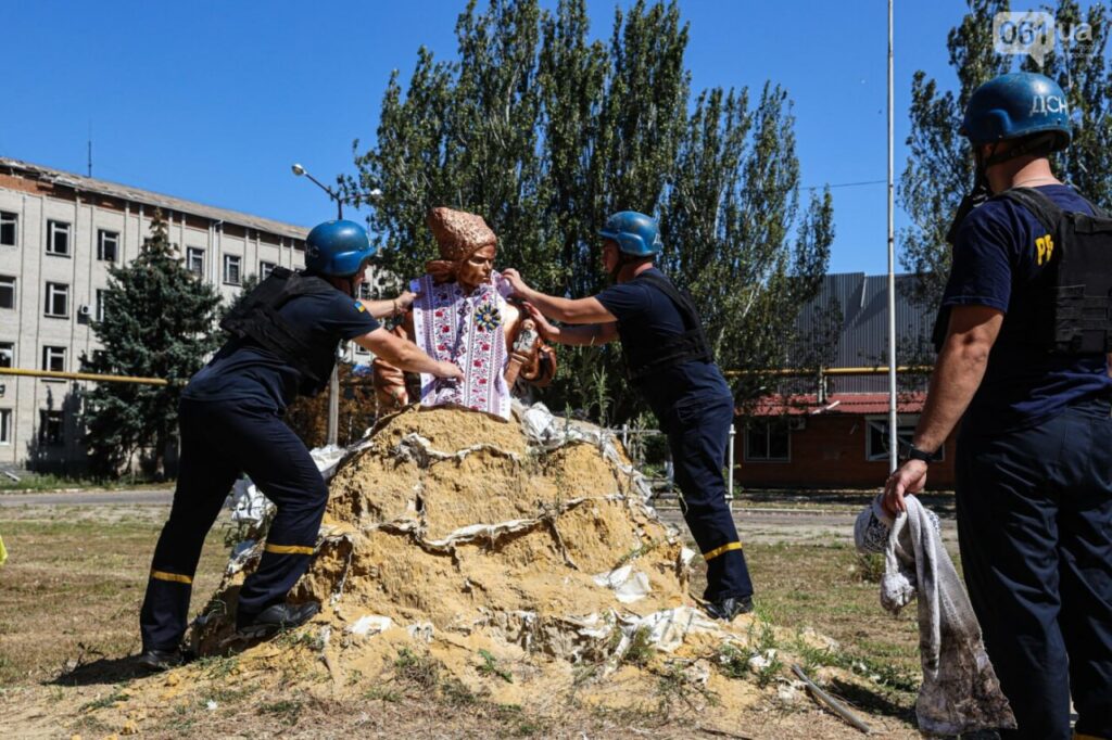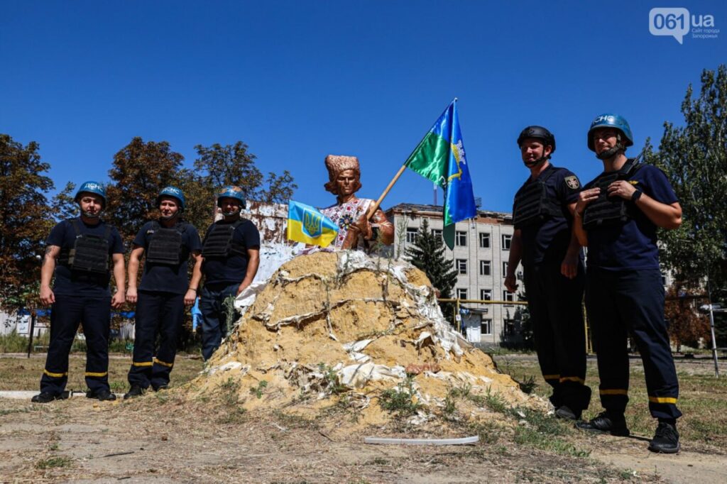 Бойцы ГСЧС, которые несут службу в прифронтовом Гуляйполе, решили подготовить монумент Нестора Махно к государственным праздникам и обновить вышиванку, в которую был «одет» памятник. Также возле памятника, который обложен мешками с песком, чтобы его не повредило российскими снарядами, установили флаги Украины и Гуляйполя. Как сообщила спикер ГСЧС в Запорожской области, они это делают, чтобы и дальше мотивировать людей, а украинские военные на фронте видели, что есть крепкий тыл и он несокрушимый.