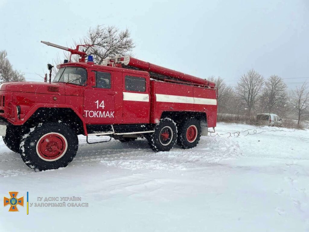 Непогода в Запорожской области: спасатели вытащили из сугробов две легковушки и грузовик, - ФОТО