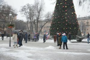 Возле главной елки Запорожья выступали творческие коллективы с народными танцами и традиционным фольклором. На проводы 2016 года даже пришли настоящие запорожские козаки, которые разыграли небольшой спектакль.