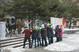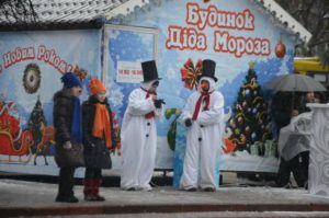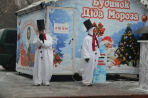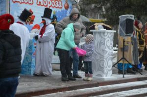 Для малышей работал уже полюбившейся «домик Деда Мороза» и аниматоры, которые не давали детишкам ни минуты скучать и привлекали к различным подвижным конкурсам и викторинам. В одном из таких конкурсов маленькие запорожцы слепили даже снеговика.