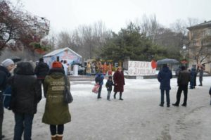 Из-за непогоды людей на площади было не много, но атмосфера была праздничной и веселой.