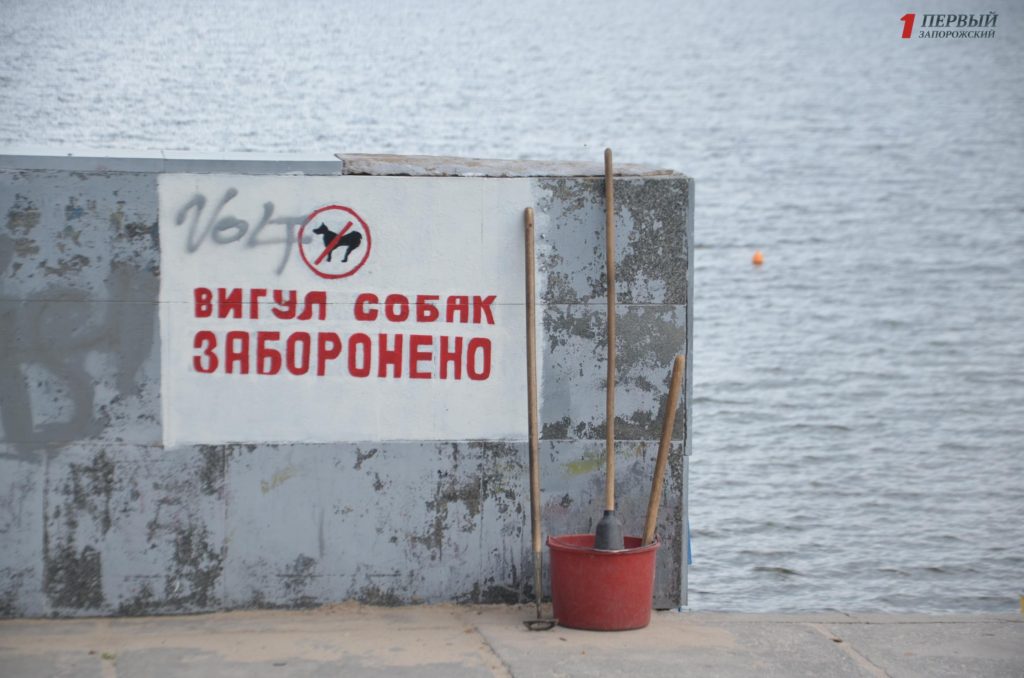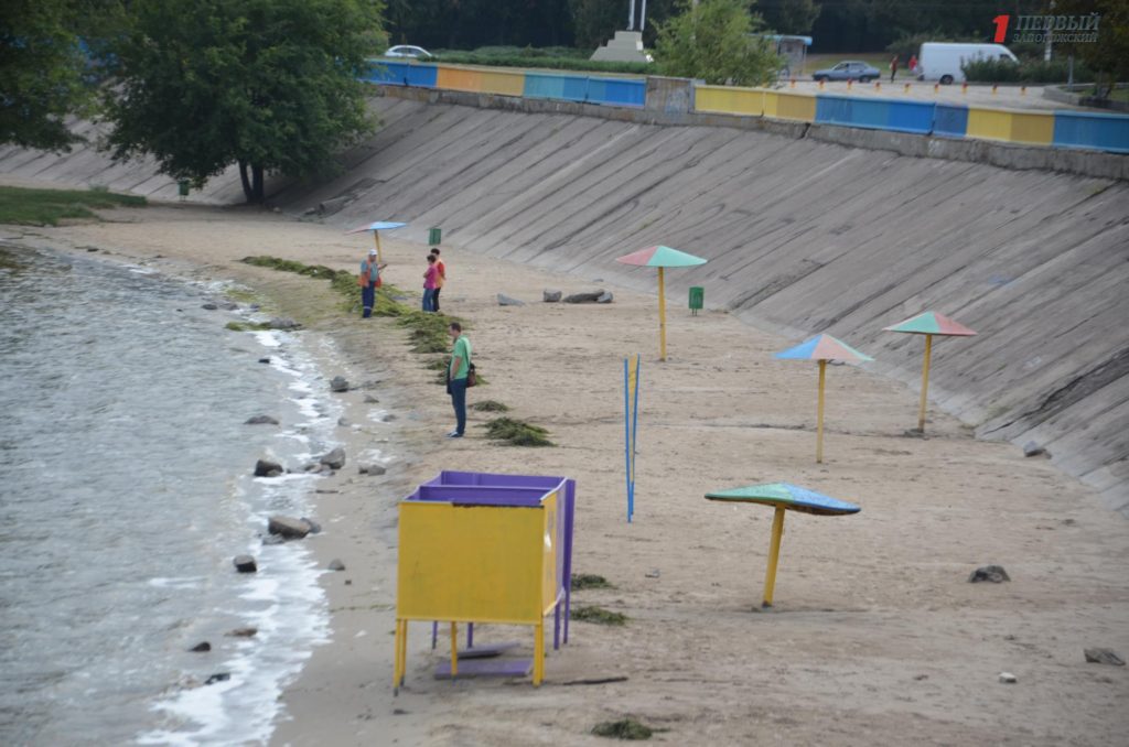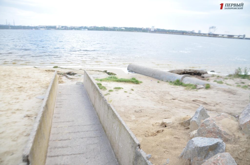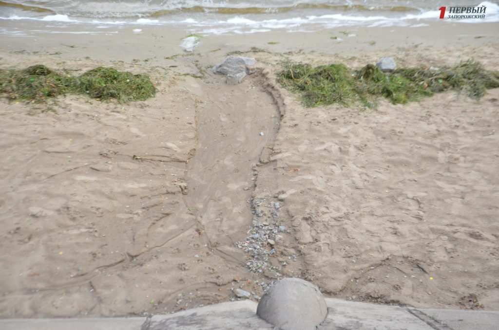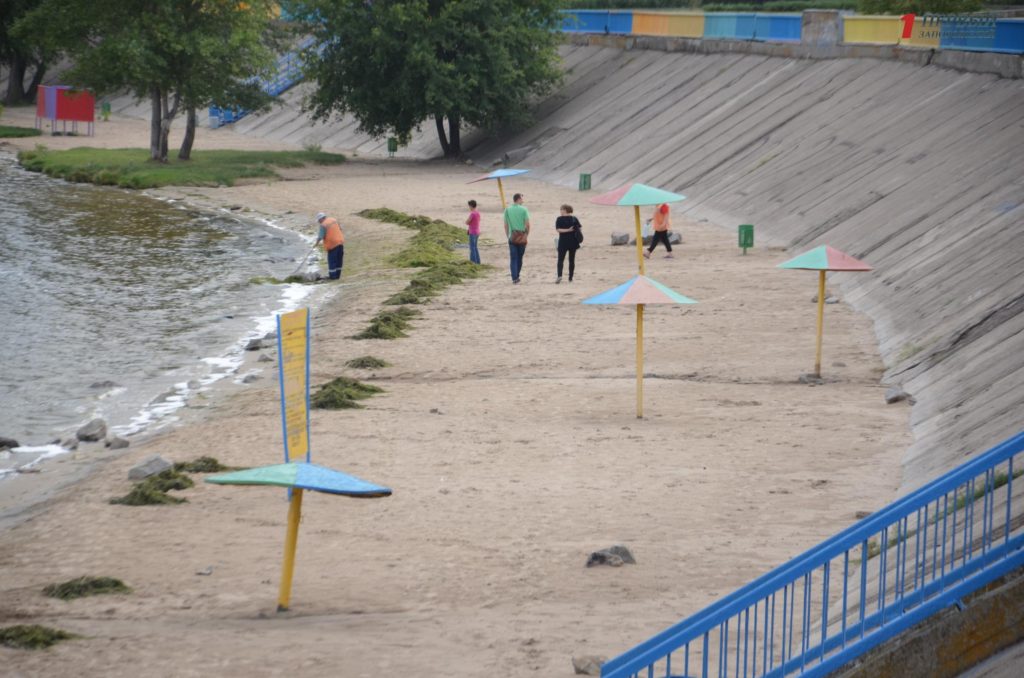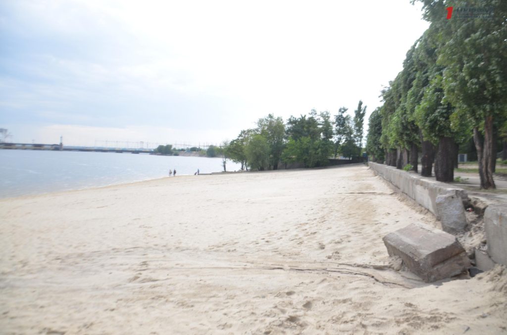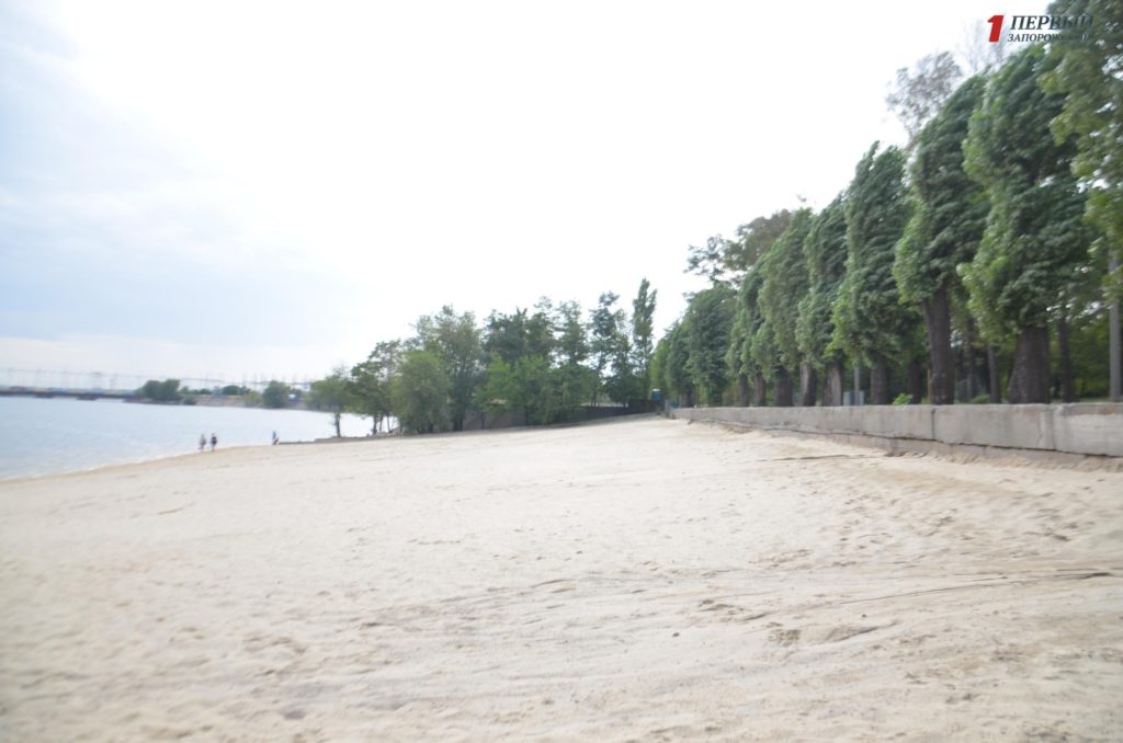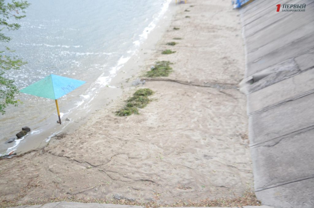 Что касается основной части пляжа, разместившейся ближе к ДнепроГЭСу, то здесь никаких работ пока не проводилось. В настоящее время несколько коммунальщиков очищают берег от водорослей.