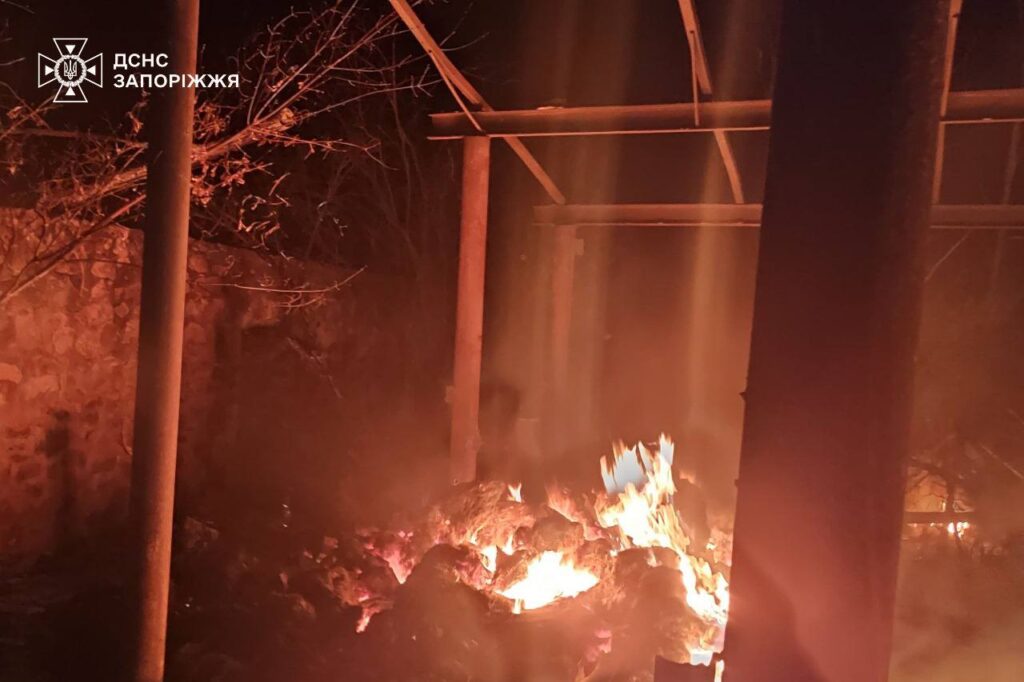 Взрывной волной и обломками повреждены многоэтажные и частные жилые дома. В Запорожском районе загорелись хозяйственная постройка и сеновал. Также по другому адресу горели обломки беспилотника. Пожар потушен.