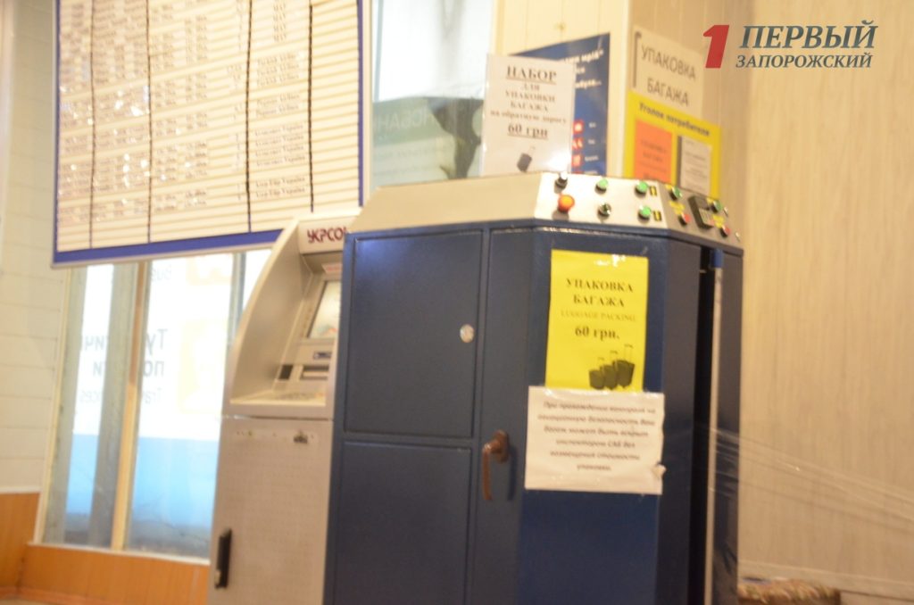 В аэропорту располагаются три платежных терминала разных банков. Кроме этого, мы заметили очень старые контрольные весы, которые использовались в аэропорту давным-давно. Сейчас они на заслуженном отдыхе (их заменили современные), но до сих пор эта реликвия хранится на видном месте и заслоняет разбитое стекло на первом этаже.