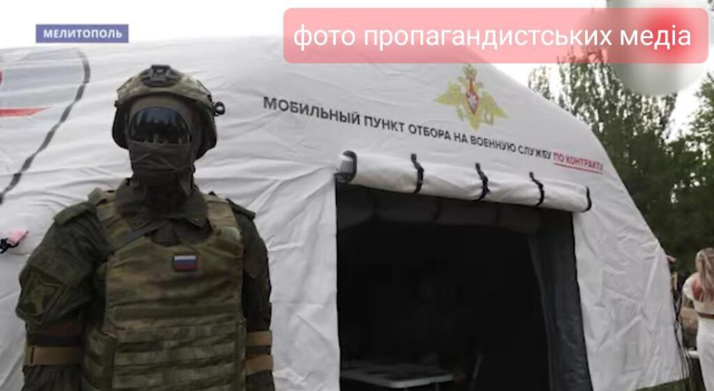 На улицах временно оккупированных населенных пунктах региона начали работу мобильные пункты отбора на военную службу. Желающих подписать контракт ищут прямо на улицах.