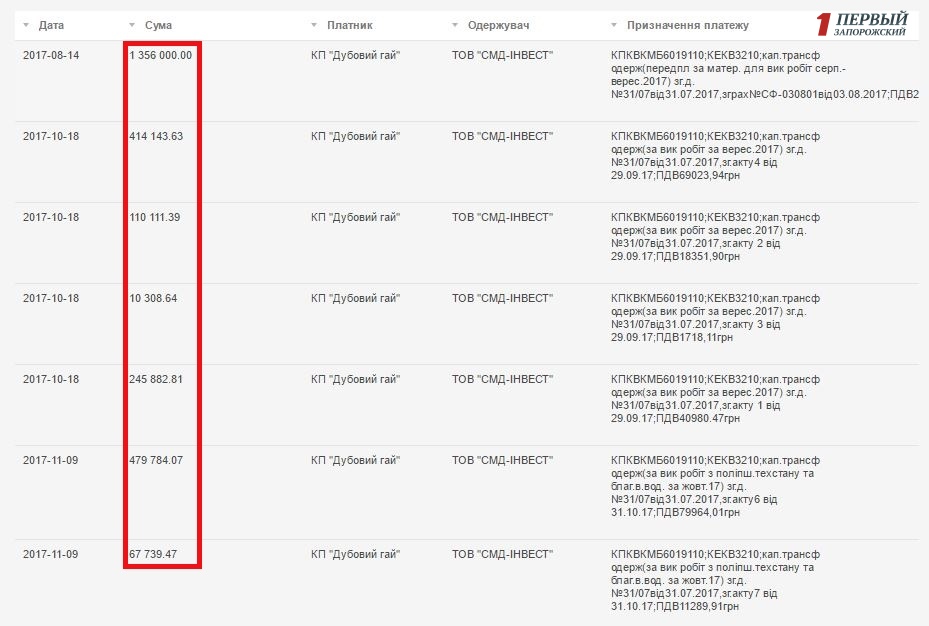 По данным сайта «Пошуково-аналітична система .007» фирма-подрядчик ООО «СМД-IНВЕСТ» на сегодняшний момент получила от заказчика более 2,6 миллионов гривен. Это при том, что акты-приема передач еще не закрыты.
