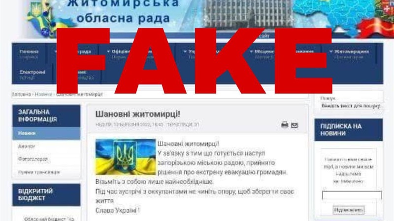 Хакеры разметили сообщение на сайте Житомирского облсовета о срочной эвакуации населения в связи с нападением на них Запорожского горсовета.