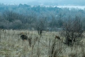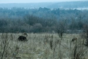 В объектив камеры попали мирно разгуливавшие дикие кабаны, удивленные олени, лошади и птицы. Снимками он поделился в сети Facebook.