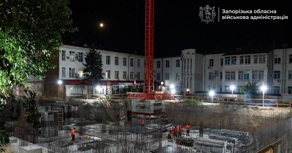 В Запорожье продолжают строительство нового хирургического корпуса областной детской больницы. Работы ведут 24/7.