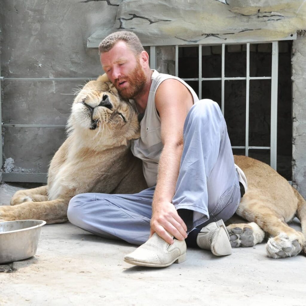 Первым его питомцем стала львица Катя из Ялтинского зоопарка. Вместе с ней Пылышенко установил три рекорда: 36 дней в клетке с львицей, единственный в мире человек, принявший роды у львицы, и единственный в мире художник, который писал картины в одной клетке с львицей.