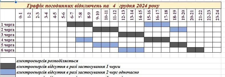 В среду, 4 декабря, в Запорожье и в Запорожском районе планируют вводить графики почасовых отключений электроэнергии.