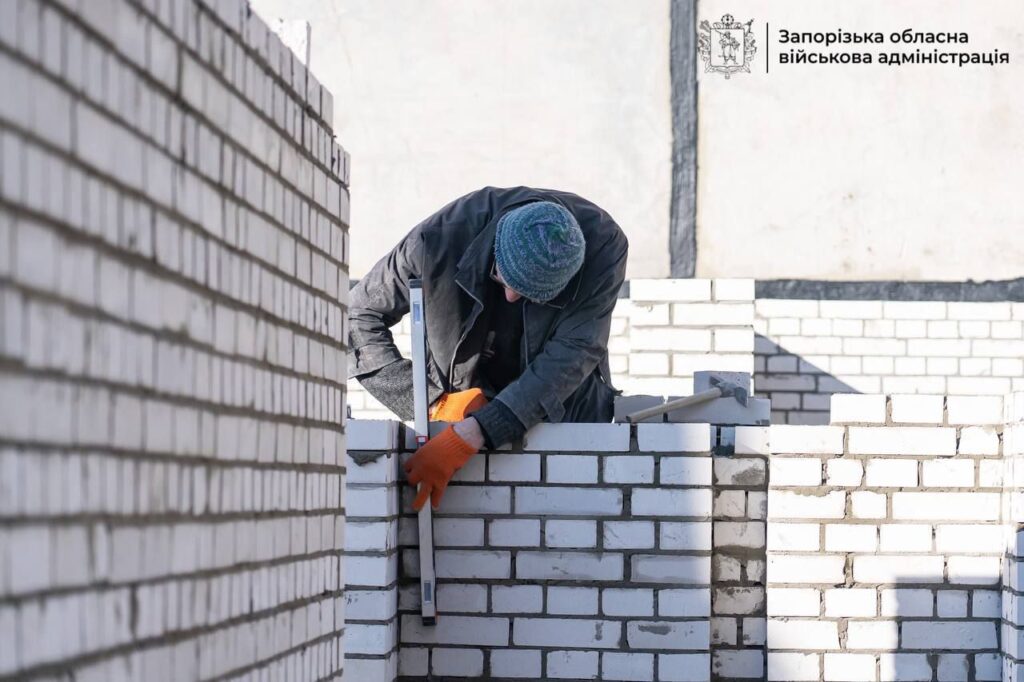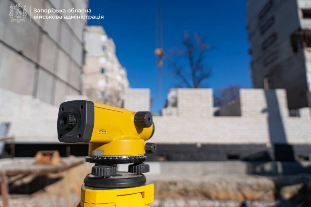 В Запорожье восстанавливают разрушенный дом по улице Запорожская, 2-А. Одновременно продолжается ремонт поврежденного соседнего подъезда. Работы выполняет новая подрядная организация.