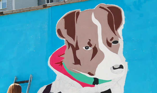 Мурал с псом по кличке Патрон появился на фасаде трансформаторной будки. На работу понадобилась около 10 литров краски, размер изображения — порядка 30 квадратных метров. Автором выступила запорожская художница Анна Соловьева, куратор проекта — Денис Антюхов.