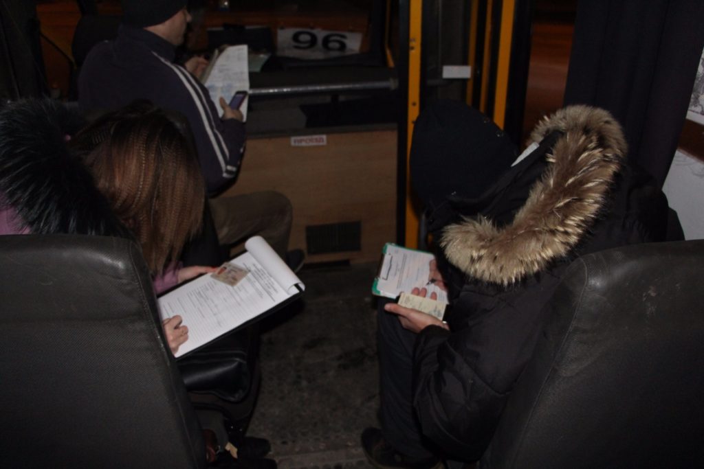Члены рабочей группы провели очередной рейд сегодня, 24 ноября, на конечной остановке «ДК ЗАЛК». В этот раз к проверке присоединились специалисты отдела по борьбе с экономической преступностью Управления национальной полиции.
