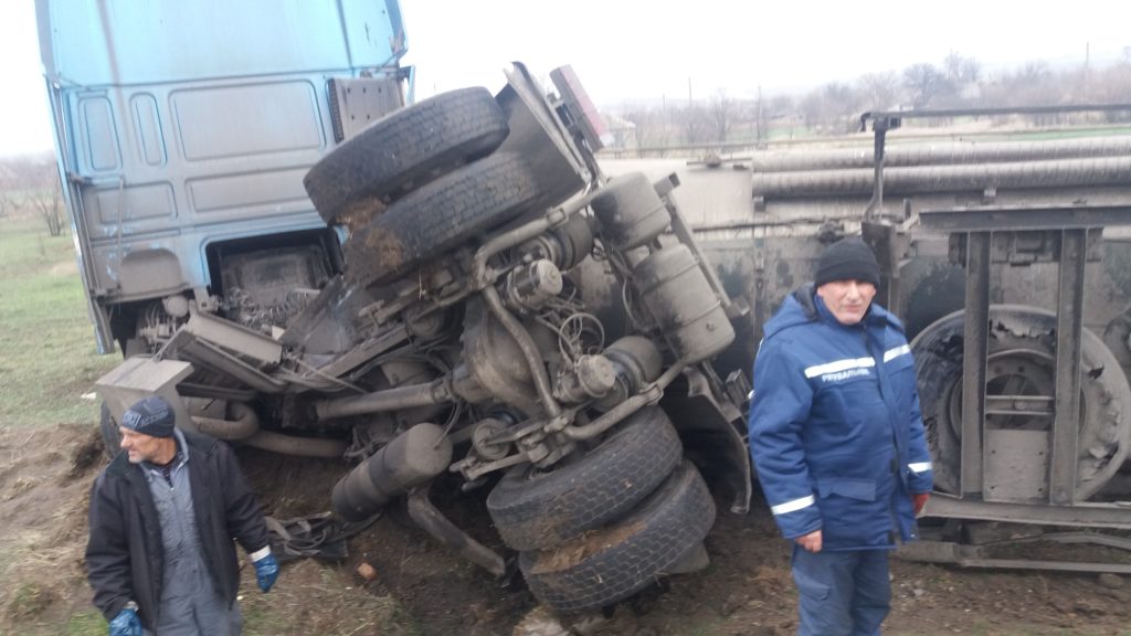 Как оказалось, автомобиль перевозил подсолнечное масло в цистерне общим весом 35 тонн. Вытаскивать грузовик приехали шесть спасателей .