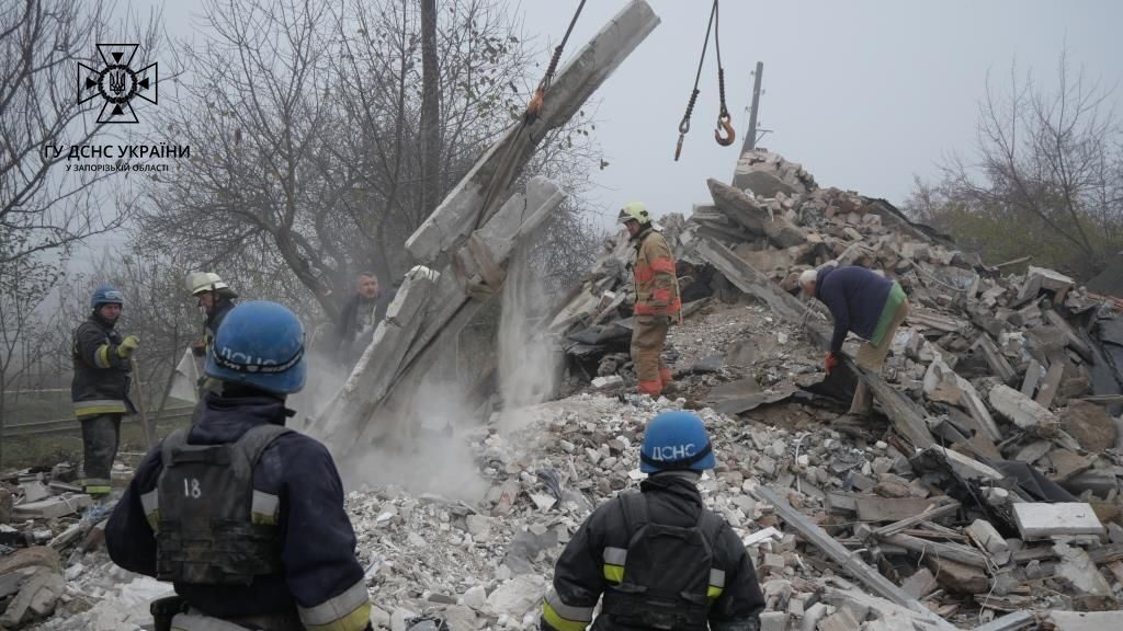 По состоянию на 9:00 18 ноября в Запорожском районе продолжаются аварийно-спасательные работы на месте разрушения жилого дома в Вольнянске, куда вчера попала вражеская ракета.
