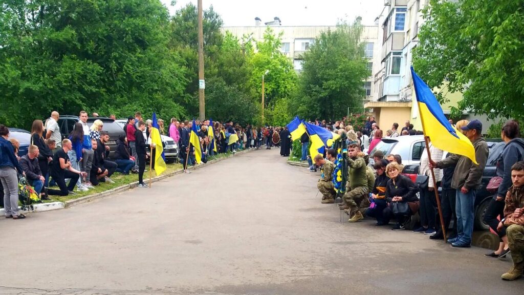 Во время церемонии прощания память погибшего защитника Дмитрия Мищанчука почтили минутой молчания.