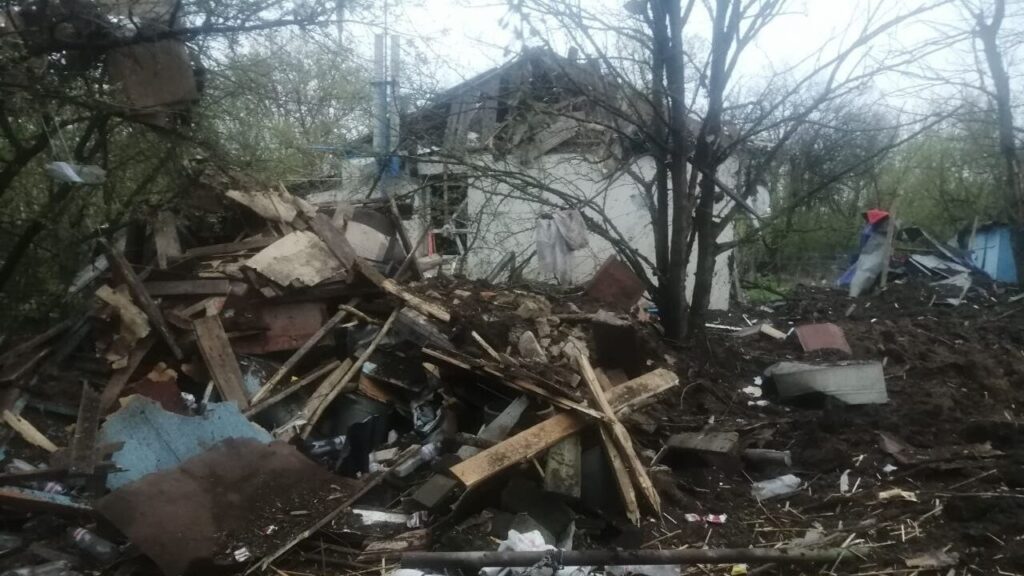 В результате вражеского удара полностью разрушен частный жилой дом. К счастью, никто из людей не пострадал.