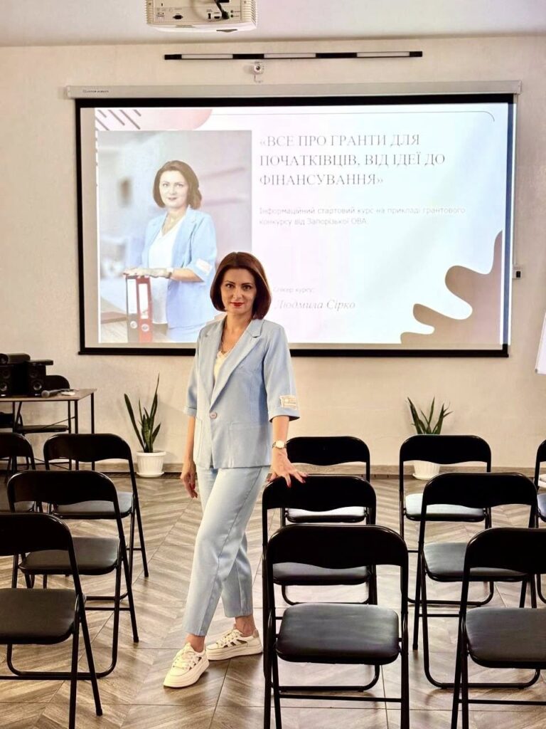 Как эффективно пользоваться всеми доступными финансовыми и обучающими возможностями для развития собственного дела, знает вынужденная переселенка из Энергодара Людмила Сирко – основательница нескольких открытых с нуля после релокации в Запорожье бизнесов. В 2023 году вместе с мужем Владимиром с помощью нескольких грантовых проектов создала в центре города заведение общепита «Столовая украинского вкуса». В 2024 году Людмила снова привлекла грантовое финансирование и начала еще один бизнес-проект – детское пространство «Лазурная радуга». Получив хороший опыт, уже в роли экспертки Людмила Сирко также консультирует по вопросам привлечения грантов для запуска бизнеса и проводит семинары, на которых делится практическим опытом реализации собственных грантовых проектов.