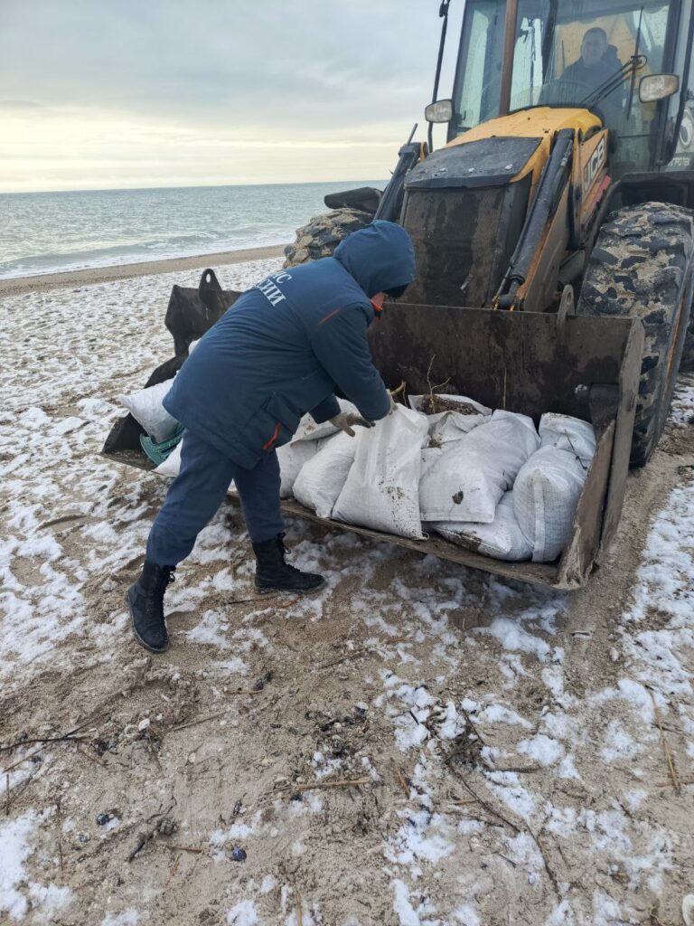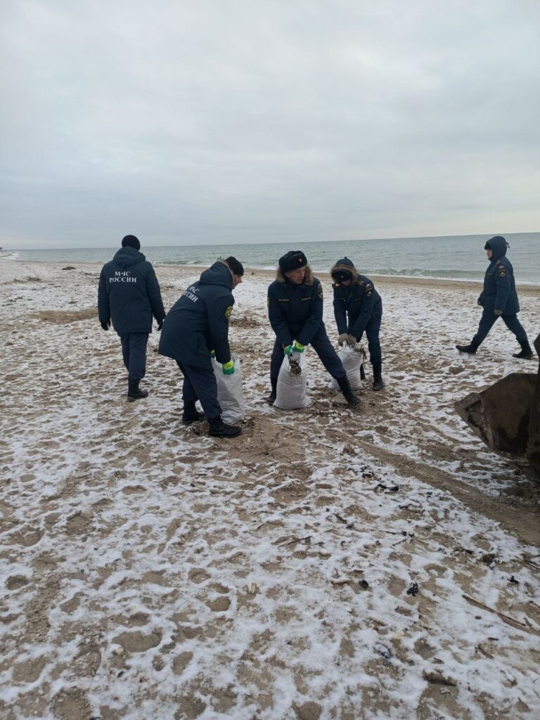 После аварии российских танкеров на Бердянской косе собрали 1058 мешков мазута, — ФОТО
