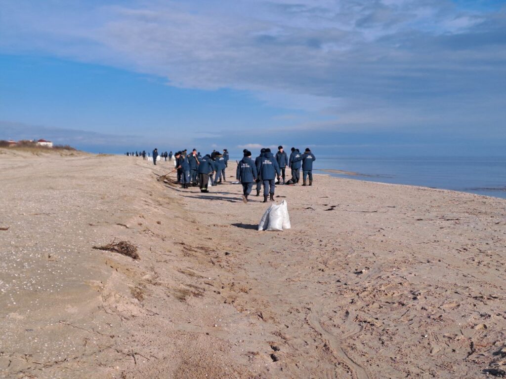 «Уже пройдено 10,5 км побережья на Бердянской косе (что составляет 72% от общей протяженности загрязненного участка), собрано 1058 мешков», — утверждает коллаборант Евгений Балицкий.