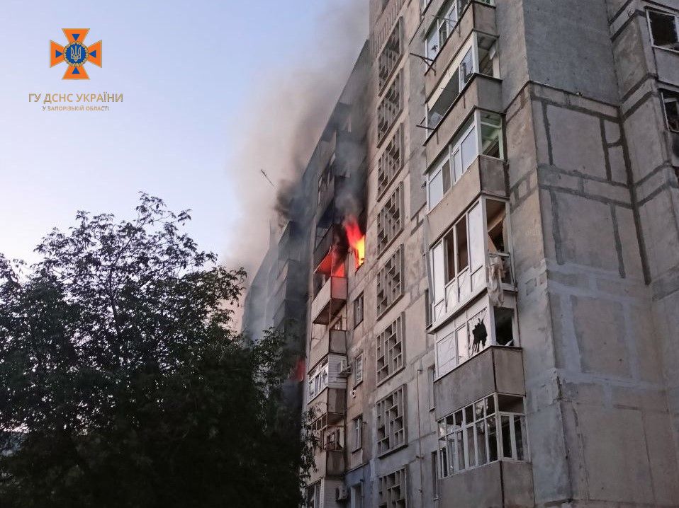 22 августа в Орехове Запорожской области в результате авиаудара произошел пожар в девятиэтажном жилом доме. Жертв и пострадавших нет.
