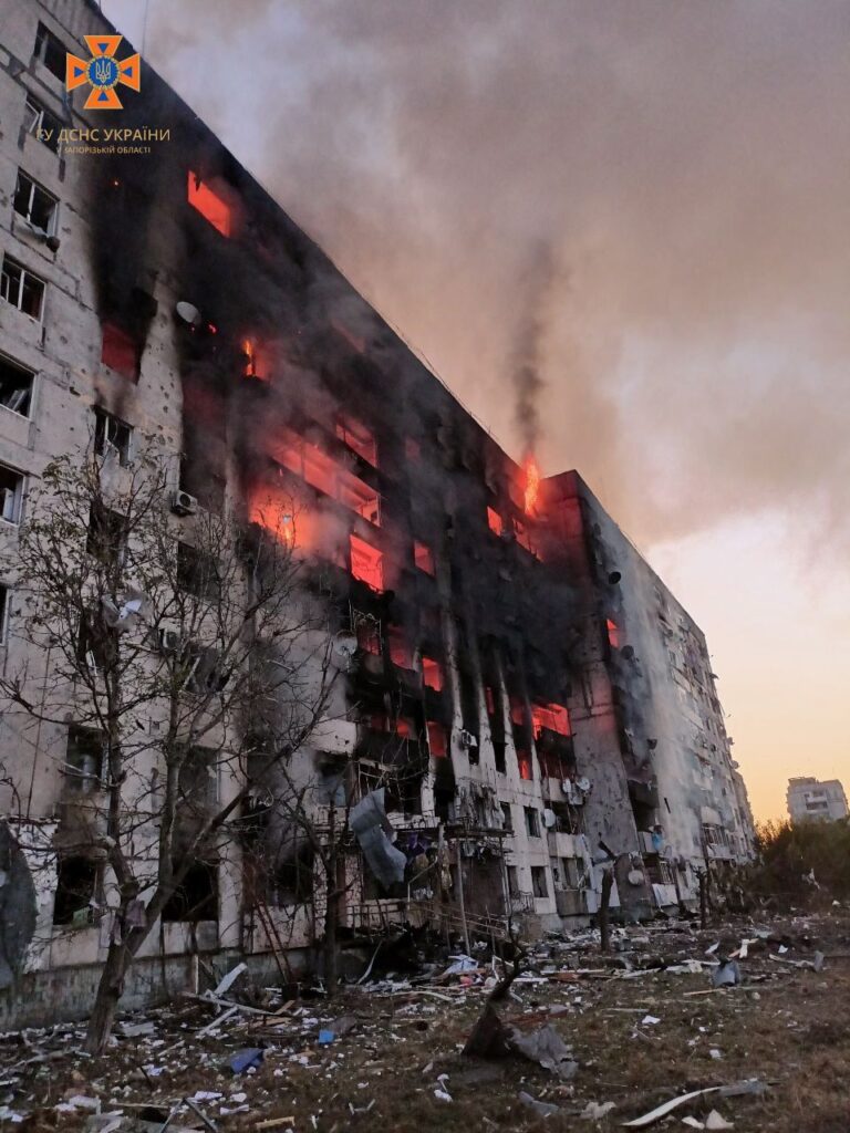 После авиаудара по Орехову загорелась девятиэтажка: дом почти полностью уничтожен, — ФОТО