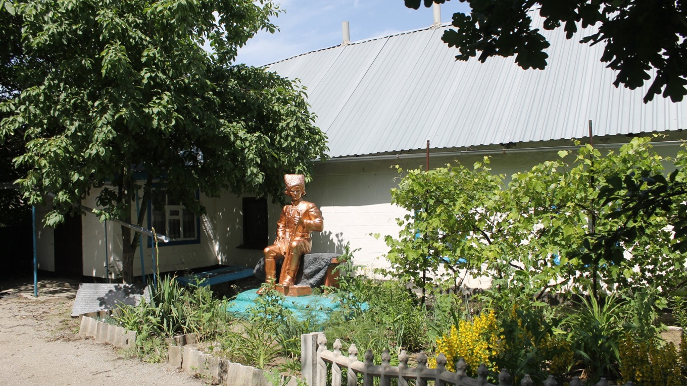 В 2008 году во дворе установили тематическую скульптурную композицию: гипсовая фигура Нестора Махно, сидящего на скамейке с саблей в руках.