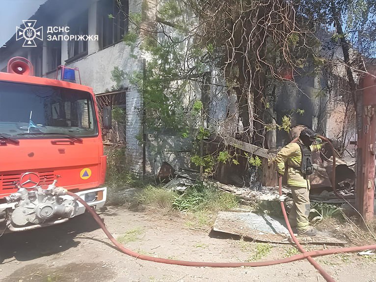 Пожары в промышленном здании и на открытой территории: спасатели показали последствия российских обстрелов Запорожской области, — ФОТО