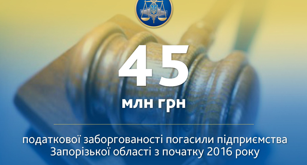 Всего запорожские должники оплатили почти 45 млн гривен налогового долга.