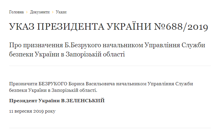 Напомним, предыдущего главу Запорожского СБУ Александра Хилько указом президента уволили 1 августа.