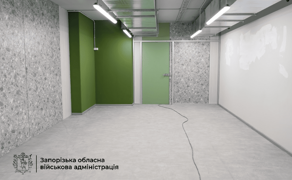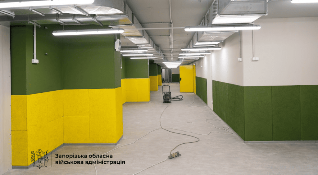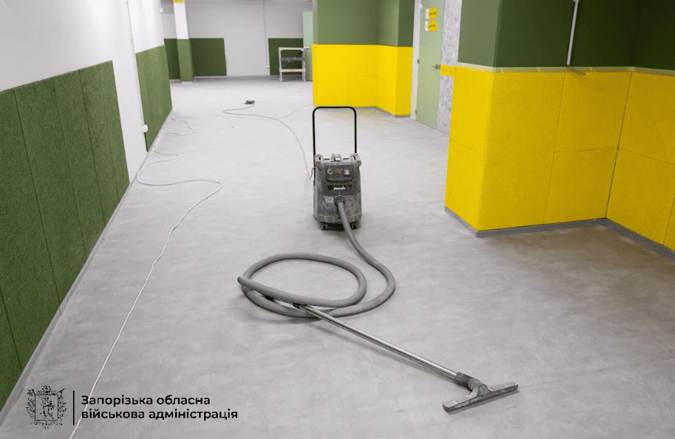 В Коммунарском районе Запорожья еще одна подземная школа — на пороге открытия. Строители завершают отделочные работы и благоустройство территории.