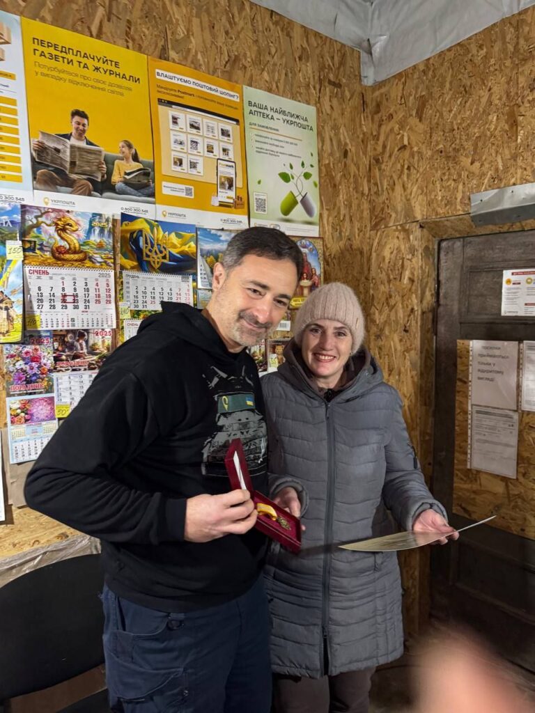 Гендиректор посетил ореховское отделение «Укрпочты» и наградить государственной наградой начальницу отделения Наталию. Он отметил, что благодаря ее работе и работе ее коллег город получает базовые услуги.