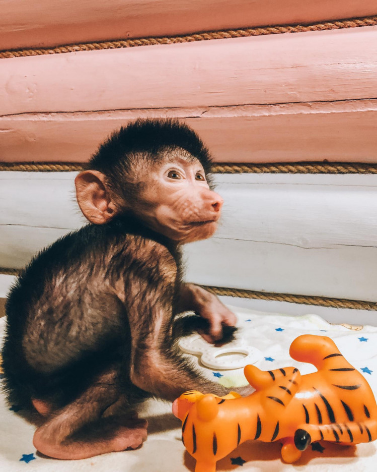 Имя девочки павиана – Лаврушка. Животное появилось на свет месяц назад.
