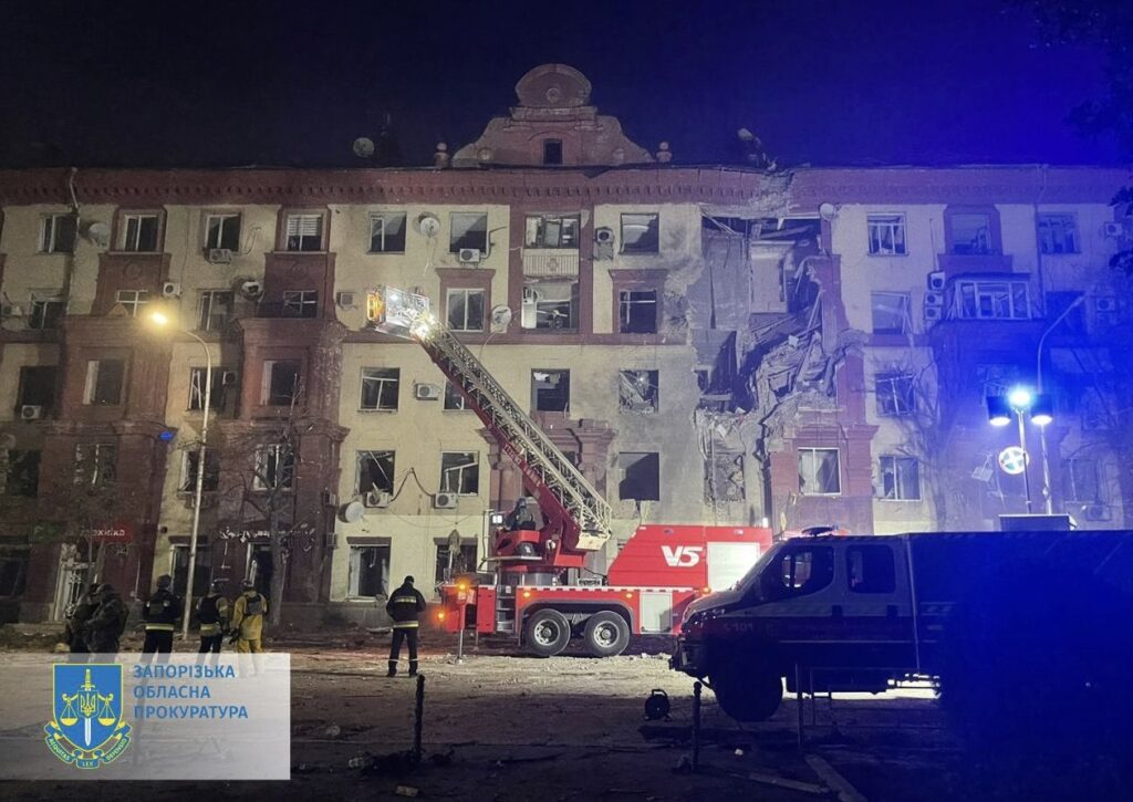По данным Запорожской областной прокуратуры, также в результате ночной атаки выбиты окна в домах рядом с местом попаданий, подверглись частичным разрушениям объекты инфраструктуры города, местный храм. Продолжаются первоочередные следственные действия. Информация о пострадавших уточняется.