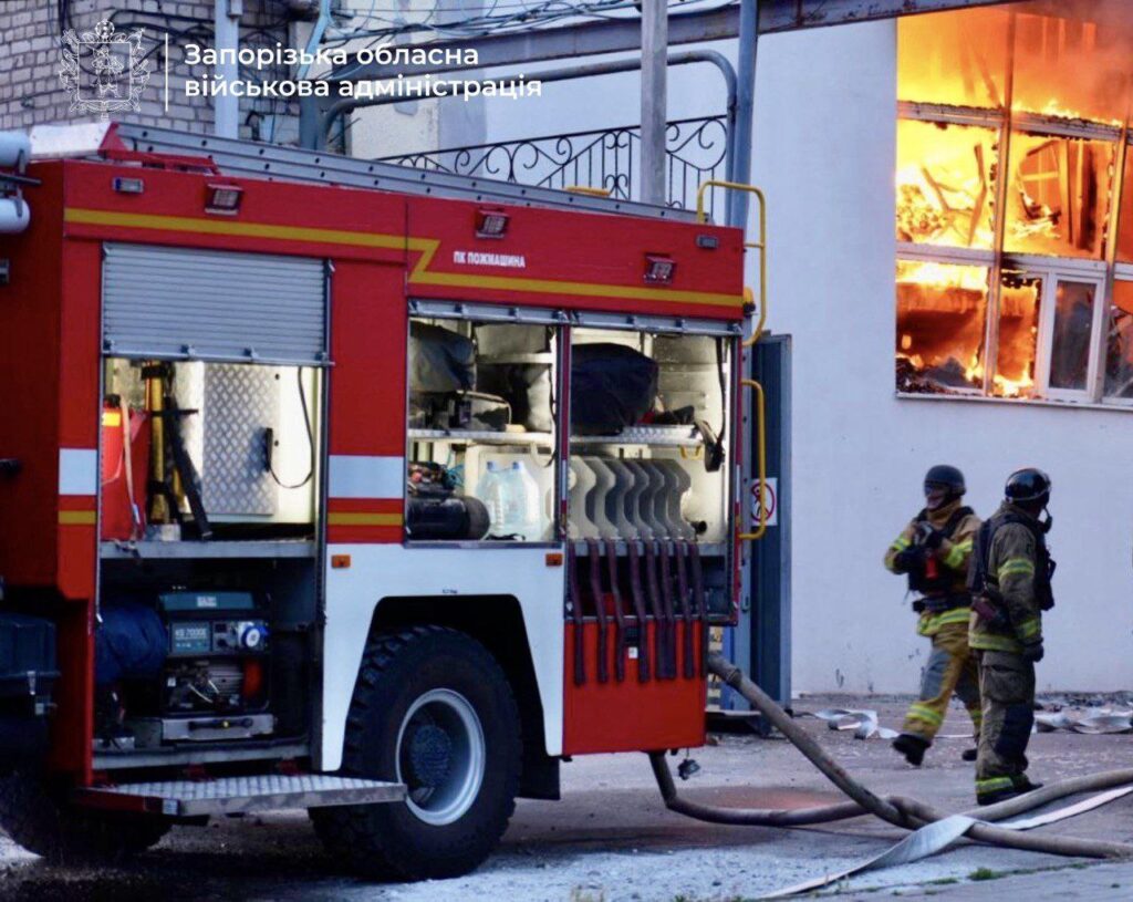 В результате российских обстрелов произошел пожар на гуманитарном предприятии.