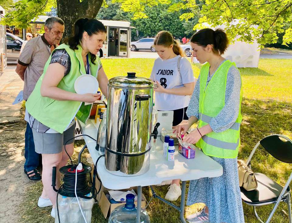 На месте развернута палатка городского совета. Представители райадминистрации и соцработники предоставляют консультации гражданам и фиксируют информацию об имеющихся повреждениях.