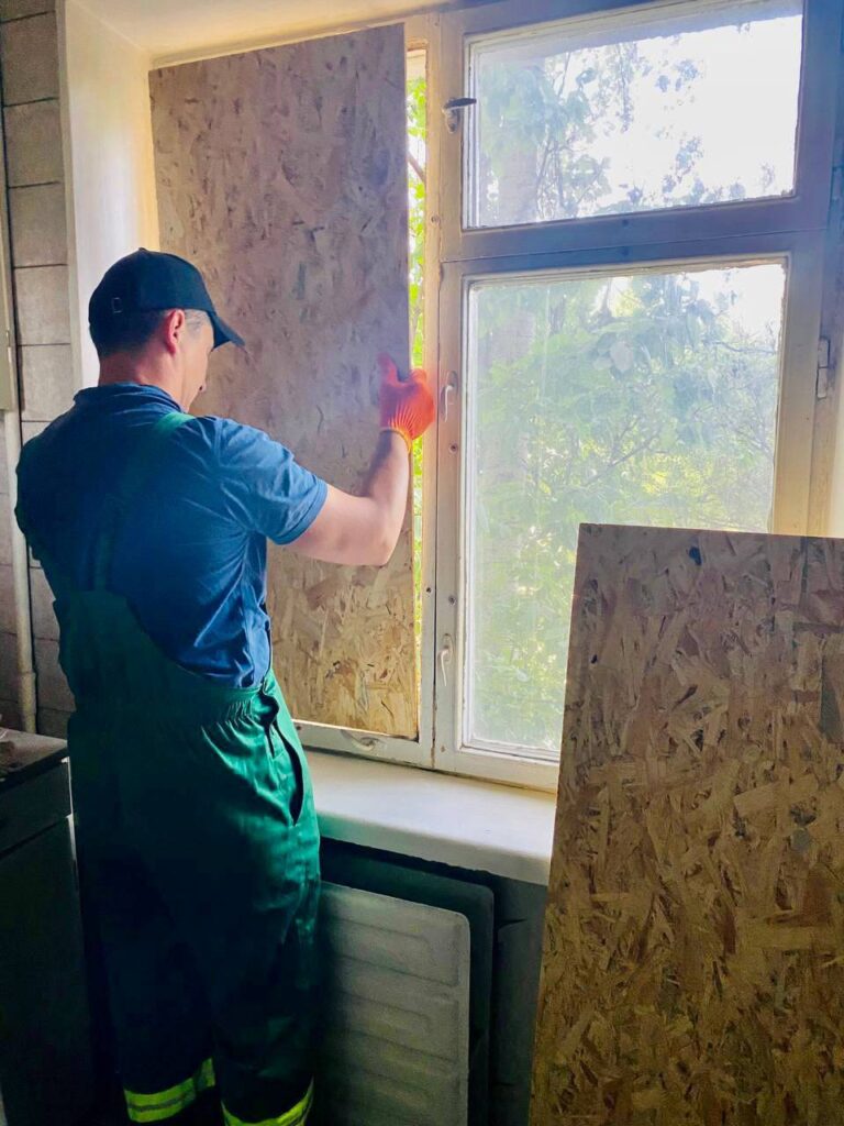 Как сообщил и.о. мэра Анатолий Куртев, сотрудники «Запорожремсервиса» обследуют повреждения и формируют план работ. Коммунальщики уже завезли материалы и приступили к закрытию окон листами OSB.