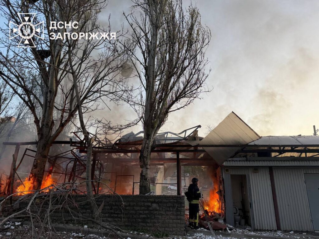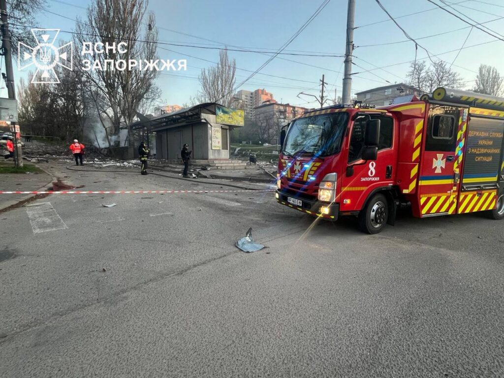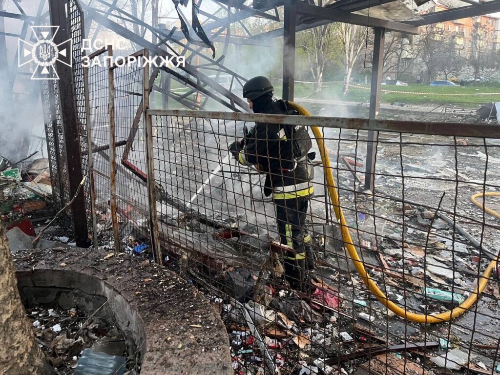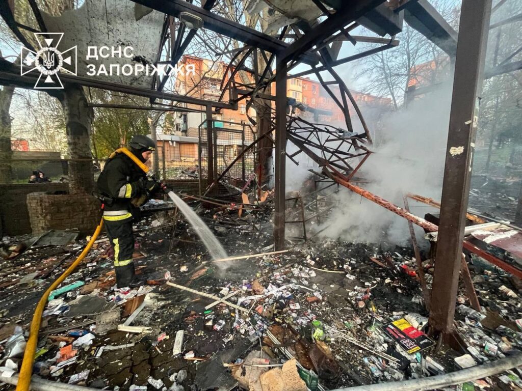 Около пяти утра 15 апреля враг нанес удары по Запорожью. Погибла 74-летняя продавщица киоска. В результате обстрела повреждены автостоянка, предприятие, остановка, близлежащие жилые дома и киоск. Произошли пожары, их потушили.