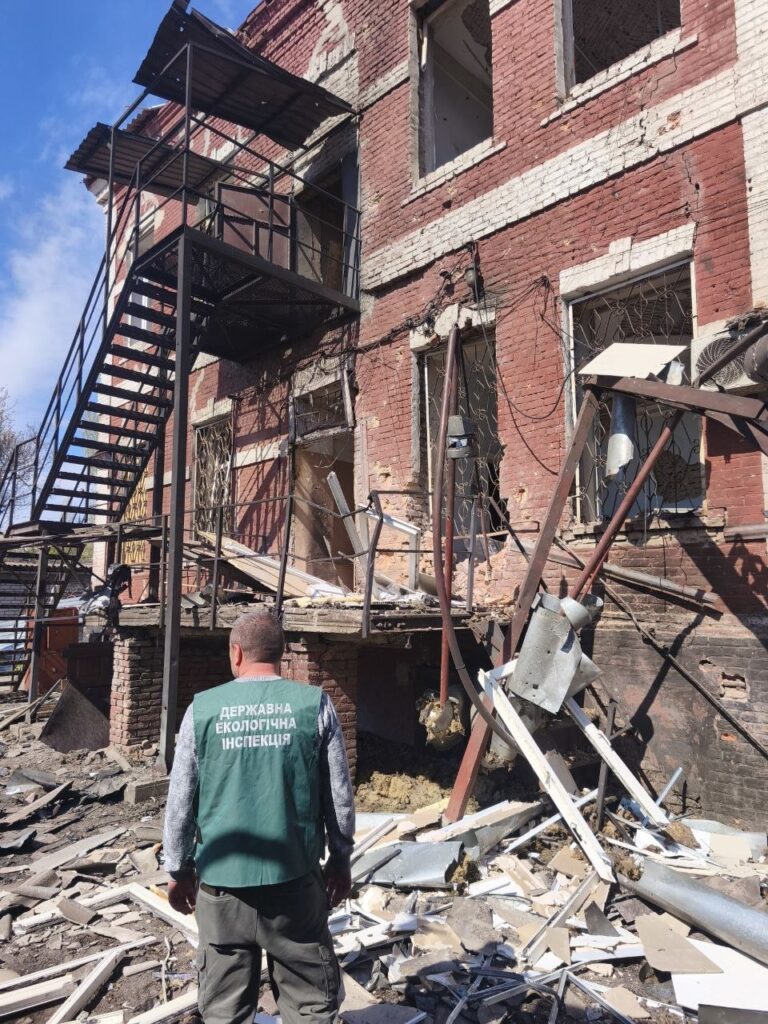 Днем 17 апреля территория Александровского района Запорожья подверглась вражеским ударам. Специалисты Госэкоинспекции провели обследование одного из пострадавших участков.