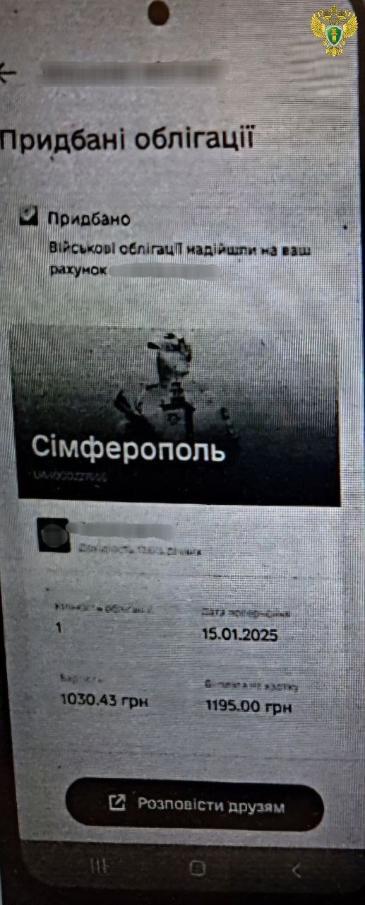 По версии россиян с октября 2023 по июнь 2024 года женщина через мобильное приложение якобы приобрела 102 украинские военные облигации на более чем 270 тысяч рублей. Россияне обвинили женщину в финансовой помощи Вооруженным силам Украины.