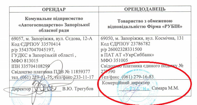 Как утверждают в пресс-службе Нацполиции, чиновники коммунального предприятия и коммерческой структуры «провернули» преступную сделку. Они вносили недостоверные сведения в бухгалтерскую документацию при закупке и списании товарно-материальных ценностей за бюджетные средства. Речь идет о частной фирме-арендодателе «Рубин», которая зарегистрирована на Андрея Яськова. Примечательно, что с 25 октября он числится и директором фирмы, вместо Николая Самары, который заключал договор с «Автохозяйством». Ведь ответственность может нести лишь должностное лицо, а значит в случае уголовного производства фирма остается не при делах.