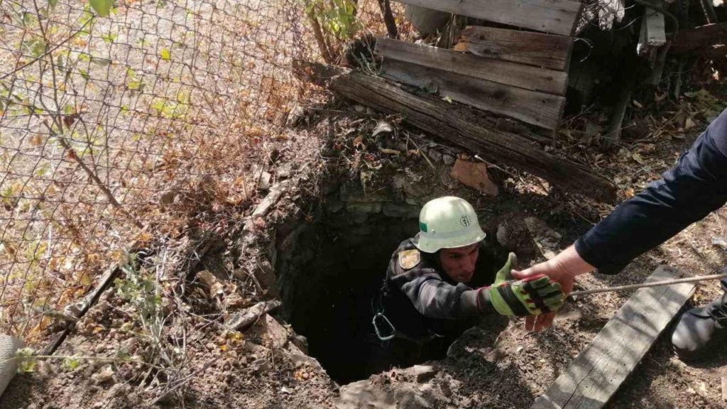 В Пологах Запорожской области ГСЧС-ники спасли кота, который упал в глубокий колодец.