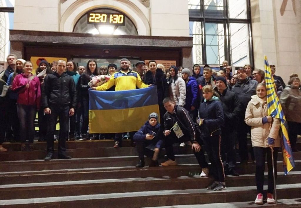 Как только запорожский спортсмен сошел с перрона поезда, под звуки оркестра одной из воинских частей Запорожья, его побежали встречать с цветами и объятиями.
