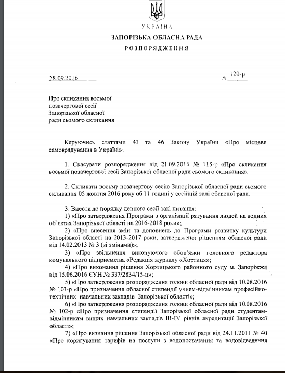 Депутаты утвердят программу по спасению людей на водных обьектах, внесут изменения в программу по развитию культуры, наконец-то уволят главреда журнала «Хортица» и домучают вопрос с экс-директором КП «Украина». А также утвердят областные стипендии отличникам из профтехучилищ и ВУЗов и рассмотрят изменения в тариф по водоснабжению.